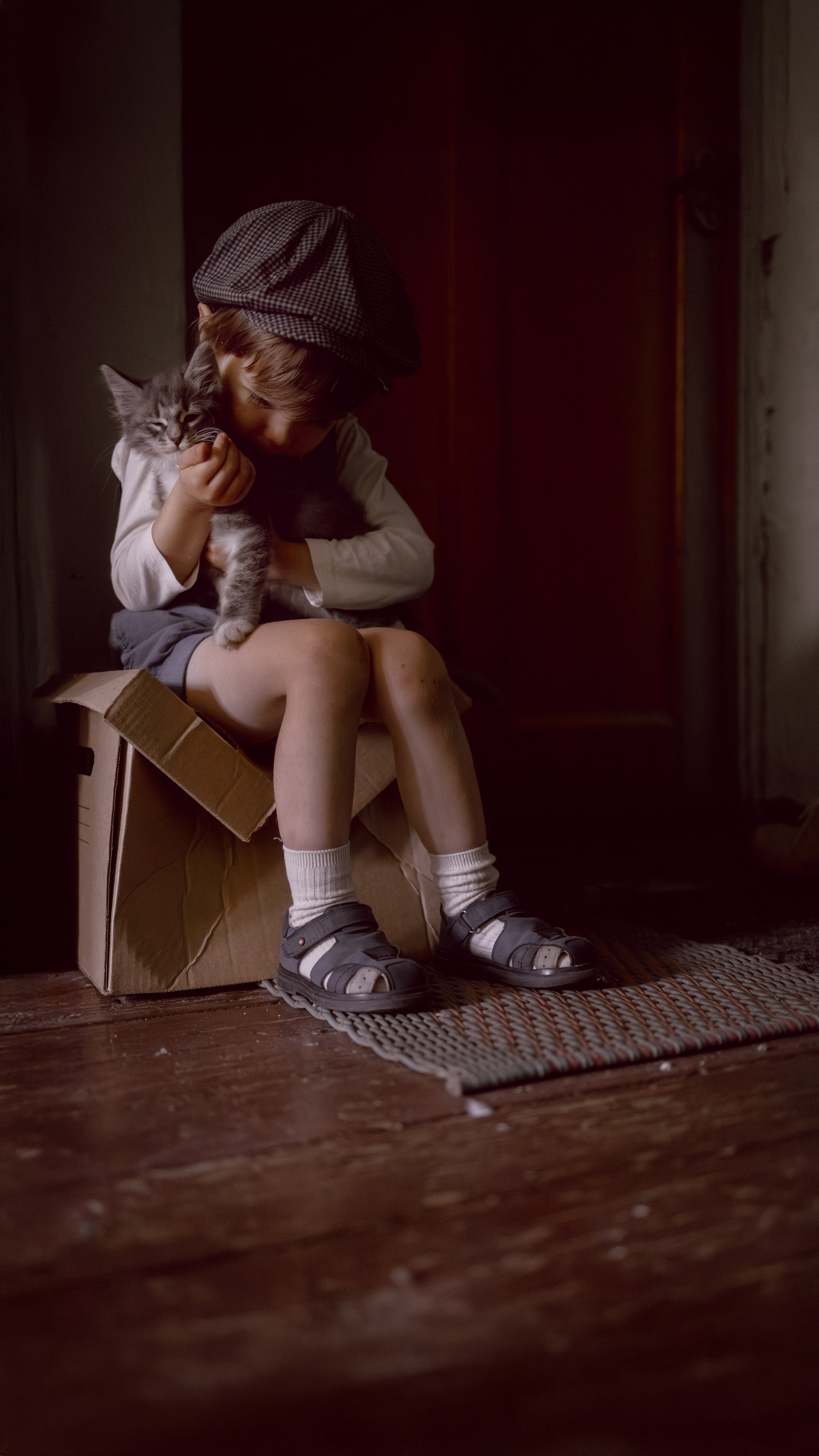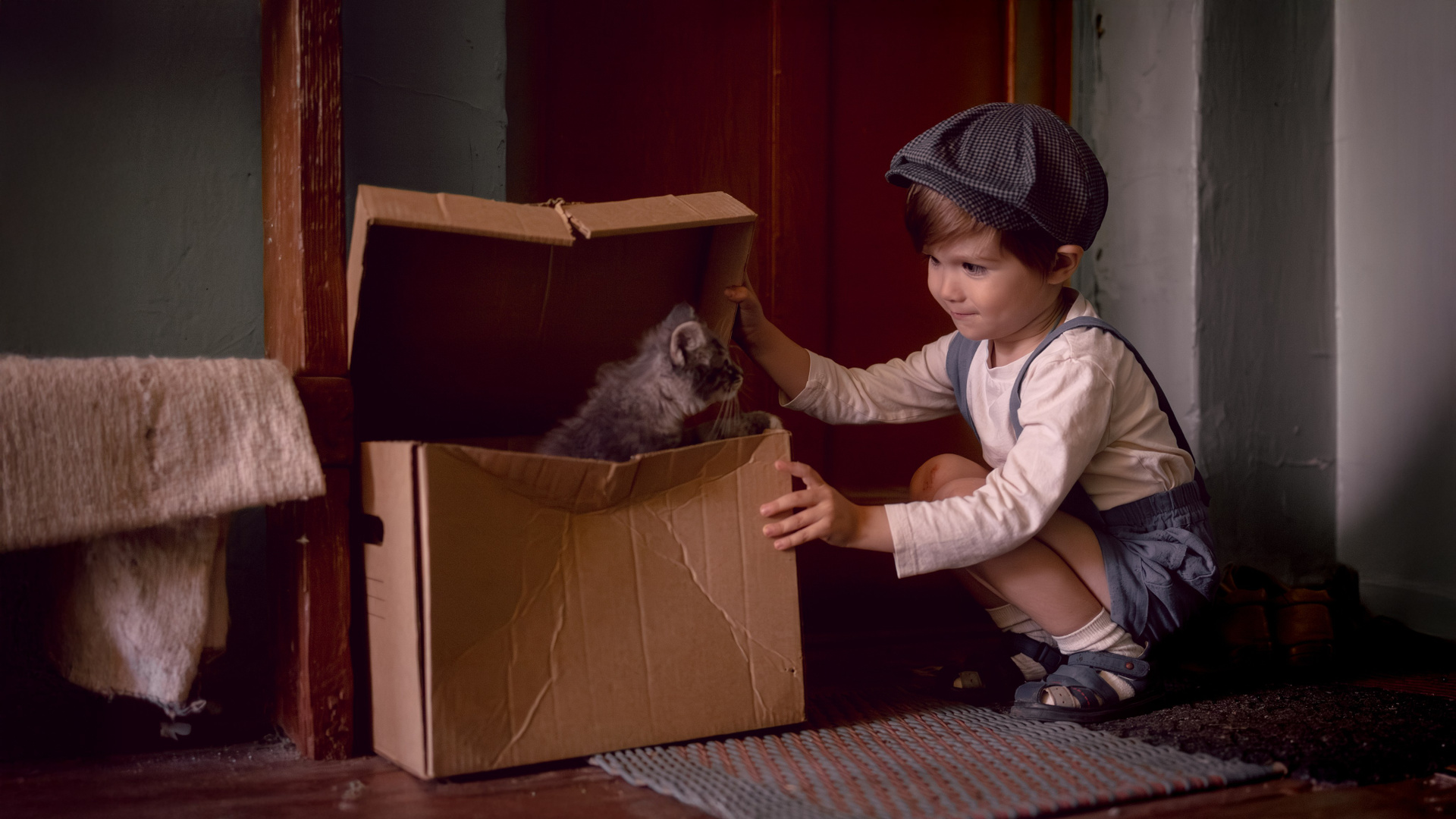 В тот ясный летний день я, трех с половиной лет отроду, возвращался из магазина с мороженым, хлебом и в прекрасном настроении.Громкий писк из коробки! Прямо в наш подъезд кто-то подбросил коробку с котёнком! Негодяи…так обычно ругается папа в подобных случаях… Бедный зверь трясся от страха, но увидев меня не испугался и прятаться не стал, кажется тут и началась наша дружба.